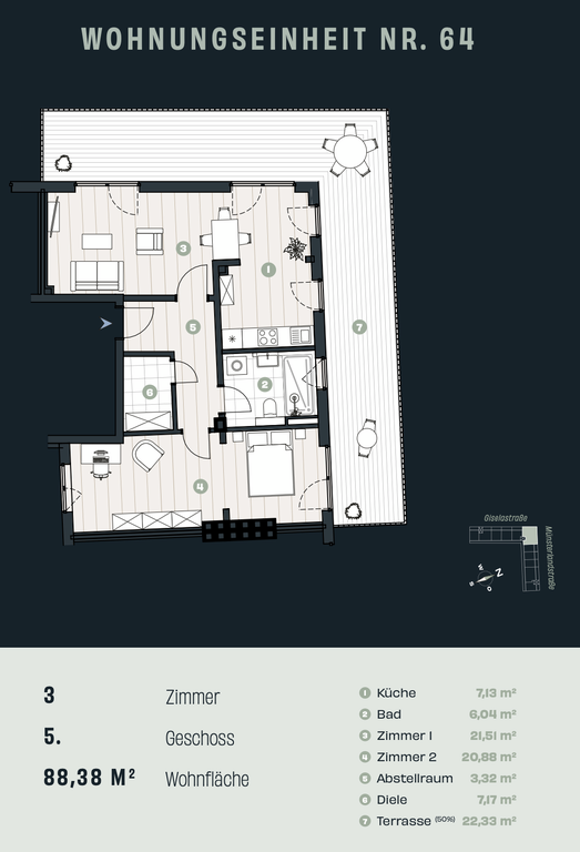 • Aufzüge, Kellerabteil und Innenhof bieten weiteren Komfort und Extras im urbanen Lifestyle Die auf der Website enthaltenen Visualisierungen der Außenanlage, der Fassaden, der Wohnräume und der Farbgestaltung geben die künstlerische Sicht des Illustrators wieder und sind nicht verbindlich. Sie können Sonderwünsche und Mehrausstattungen beinhalten und dienen nur zur Vermittlung eines ersten optischen Eindrucks. Möblierungen und Kücheneinrichtungen sind ausdrücklich nicht Vertragsgegenstand.