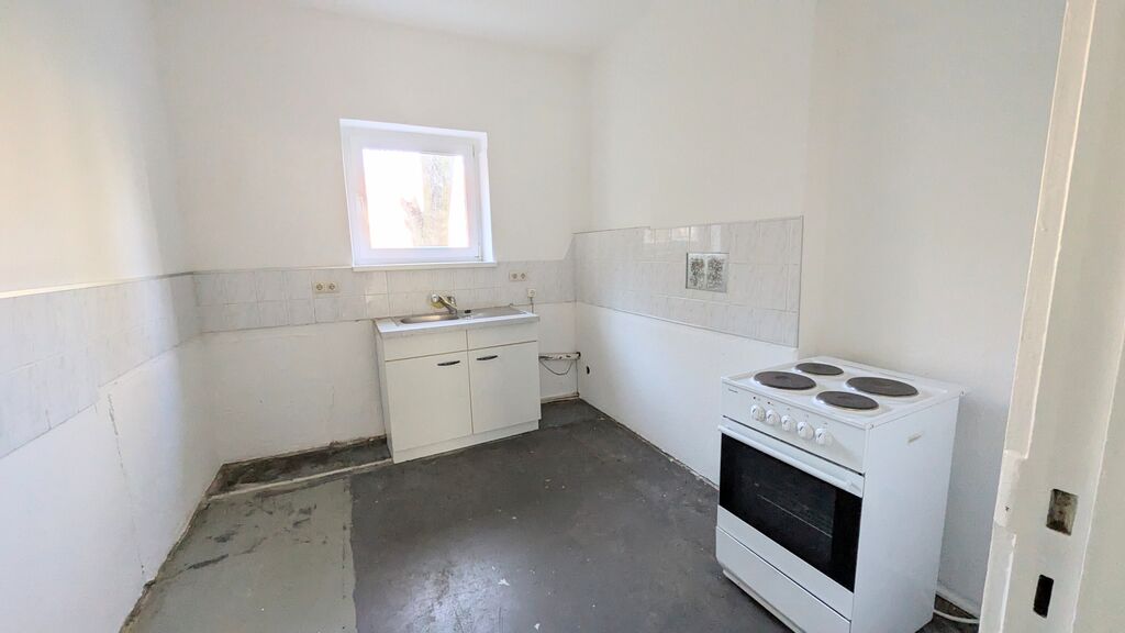 Geräumige Küche mit ausreichend Platz für eine Einbauküche und Essbereich