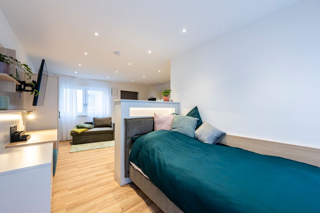 Hier bieten wir Ihnen einen exklusiven, vollmöblierten Wohntraum in Prien am Chiemsee an. In perfekter Südausrichtung, z.T. mit Bergblick sind hier wunderbare, perfekt geschnittene 1-Zimmer Appartements entstanden, die im höchsten Baustandard KfW40 QNG errichtet wurden. Die perfekten Grundrisse, bieten richtig viel Platz und Komfort - inkl. toller Einbauküche von 3er Küchen aus München, einem Sofa, Esstisch und einem luxuriösen Boxspringbett. Die Möbel stammen allesamt vom lokalen Schreiner Schuster aus Bernau. Viel Komfort gibts im hellen Badezimmer mit Fenster, das mit einer bodentiefen Luxus-Dusche Wohlfühlmomente schafft. Die hochwertige Bauweise sorgt für niedrigsten Energieverbrauch, die Heizung erfolgt über eine Luftwärmepumpe, die mit Photovoltaik versorgt wird - besser geht´s nicht!
