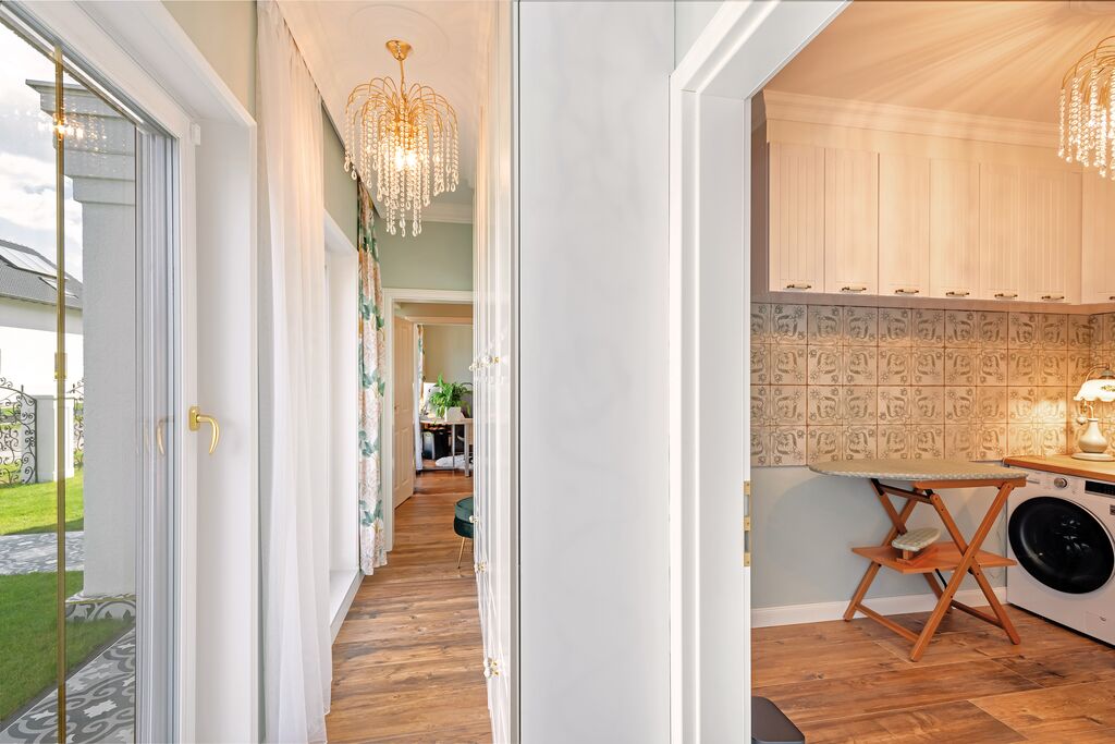 Ein weiterer angrenzender Hauswirtschaftsraum bietet zudem ausreichend Platz für eine weitere Waschmaschine und praktische Staumöglichkeiten.